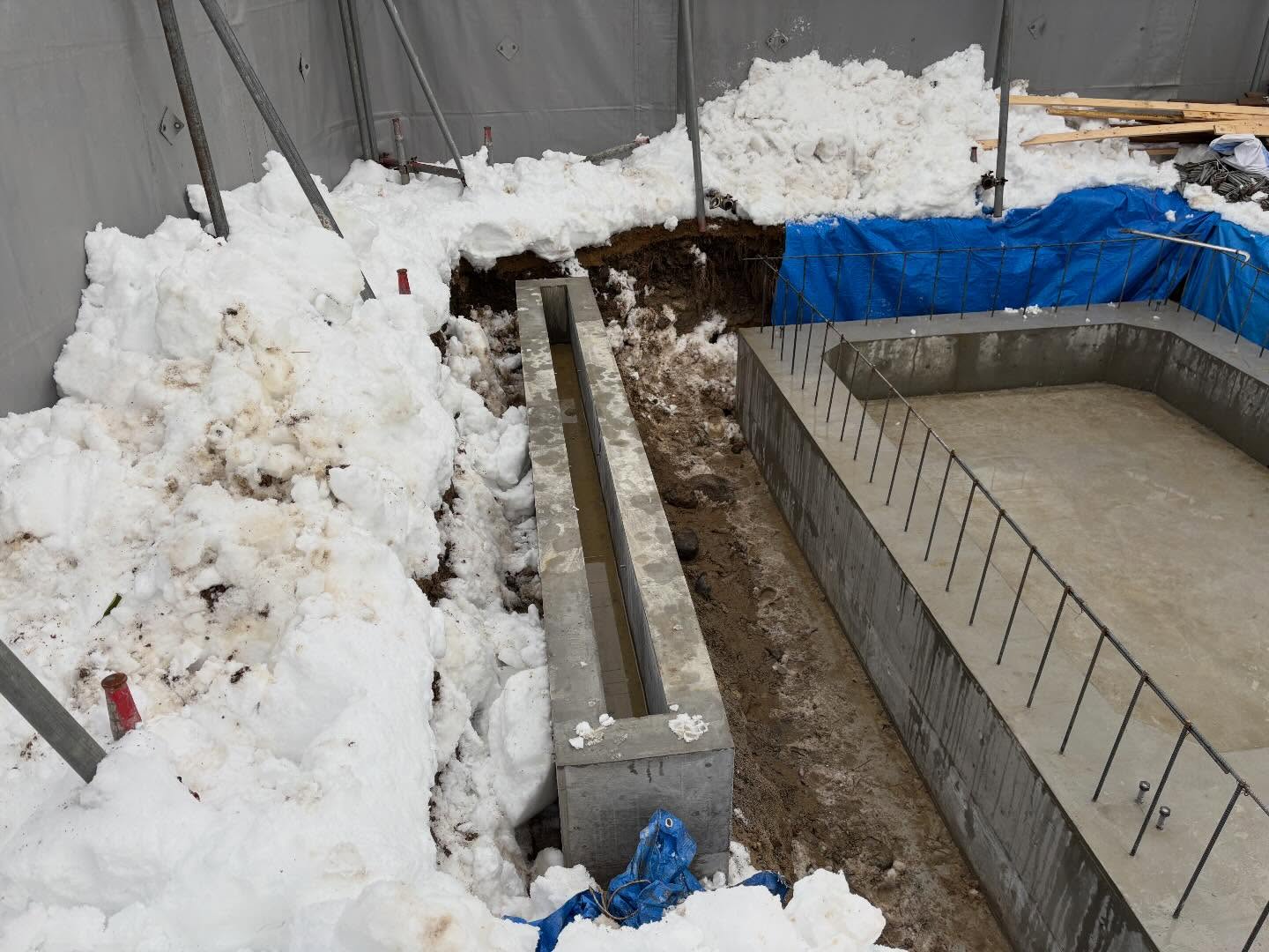 2026/01/26 インスタグラムから 公園トイレ基礎工事。 養生期間明けの脱枠。 予想以上に積雪がありましたが無事完了。 明日は一部埋戻しをしてひとまず完了です。 2月下旬頃から根巻きコンクリート〜埋戻しで工事完了です。 #公共工事 #基礎工事