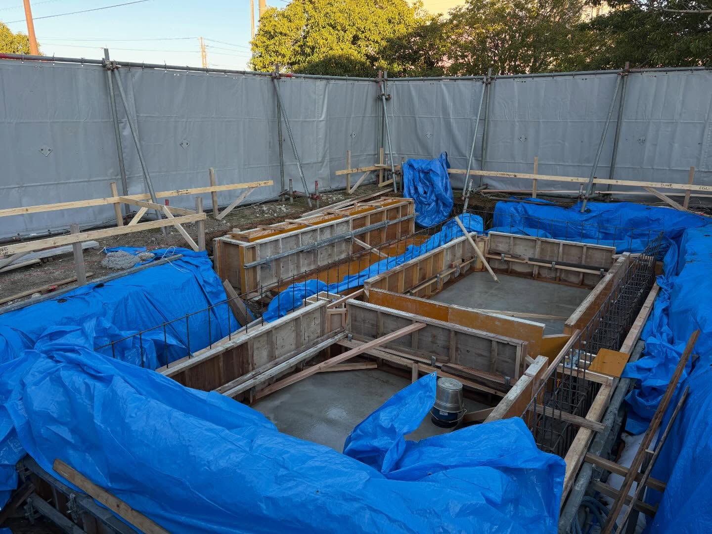 一昨日に止水材の取付け、そして昨日は立ち上がりコンクリート打設をしました。